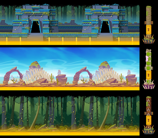 Visual development for game chapters Mayan City, Death Valley and Jungle
