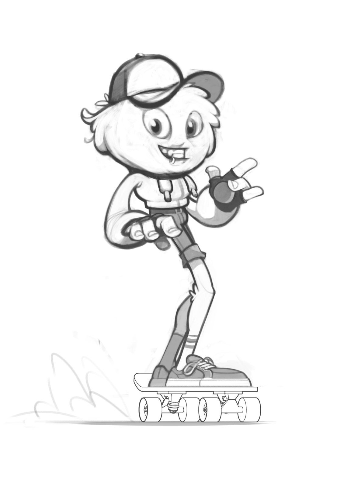 here is character i did that will be the official mascot for the local skate magazine "SWITCH", they wanted something cute and fluffy riding a skateboard :)